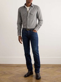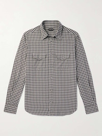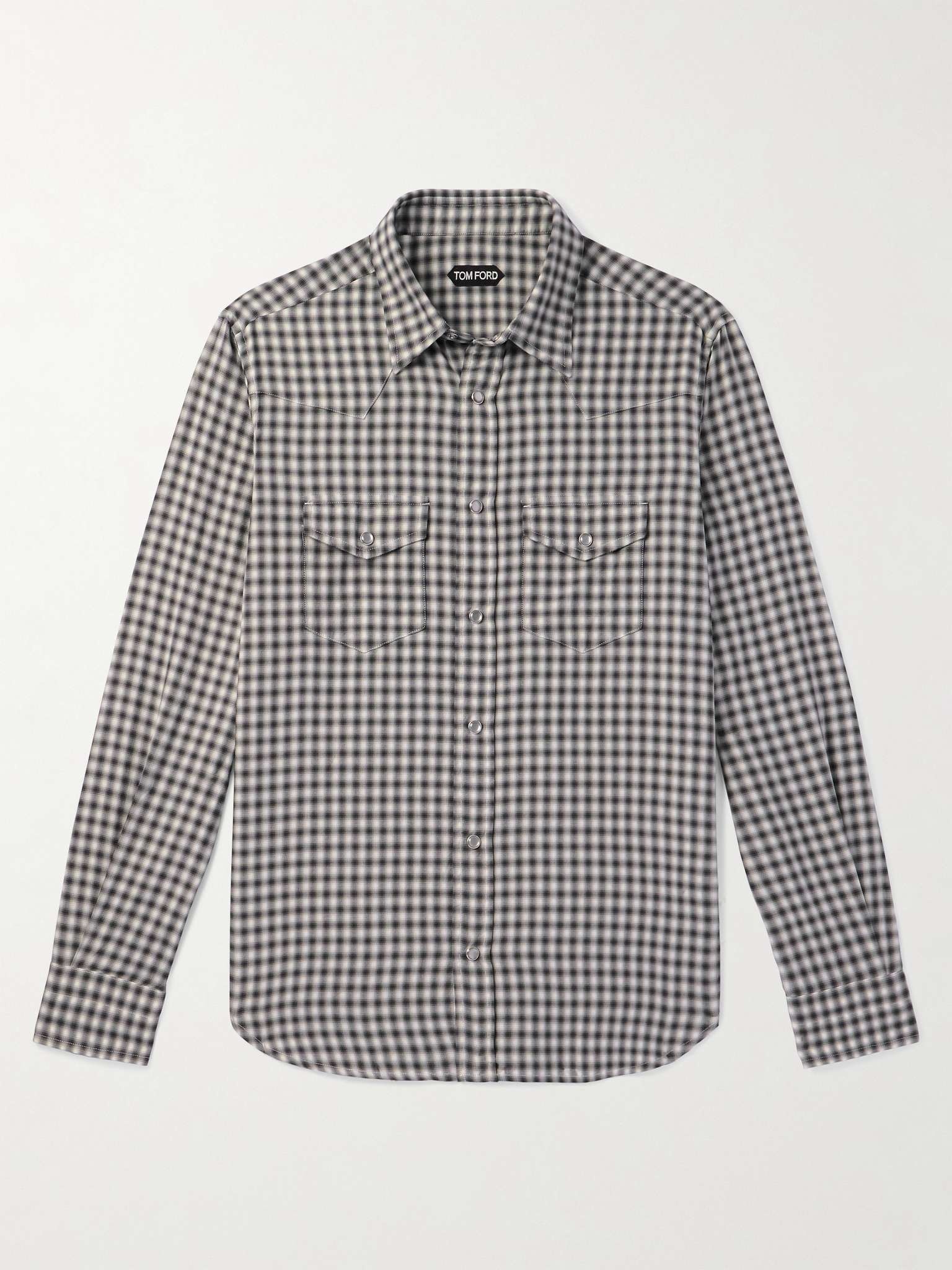 TOM FORD's shirt is a refined take on classic Western styles. Patterned in blurred checks, it's been made in Italy from lightweight cotton and fastens with pearlescent snaps along the placket, pockets and cuffs. Wear yours with jeans and boots. Size & Fit - Fits true to size, however those who are between sizes should take the larger size - Designed for a regular fit - Lightweight, non-stretchy fabric - Model is shown wearing an EU 39 (UK/US 15.5) - Model measures: chest 38"/ 96cm, height 6'1"/ 185cm Details & Care - White and tonal-grey cotton - Snap fastenings - 100% cotton - Machine wash