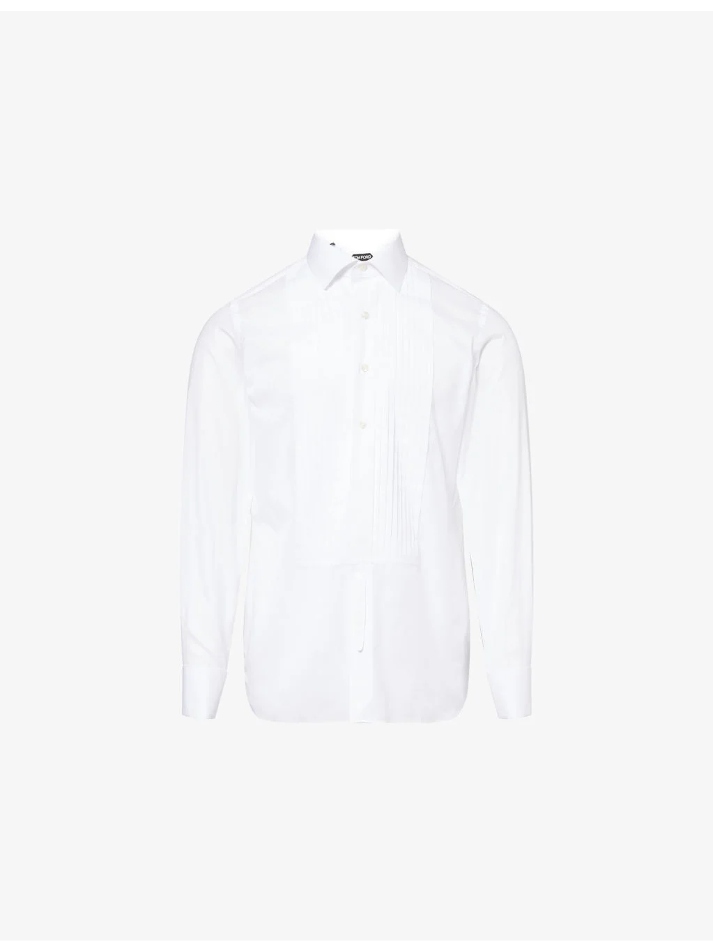 PRODUCT DETAILS - Tom Ford cotton shirt - 100% cotton - Button fastening - Regular fit, spread collar, French cuffs, silver cuff links, pleated front, curved hem, mother of pearl buttons - Machine wash at 30°C - Made in Italy - True to size - Size 15.5 collar: length 31in / 78.7cm, chest 42in / 106.6cm - Model is 6ft 2in / 1.88m and wears a collar size 15.5 - Lightweight, non-stretch Ref: R04550775