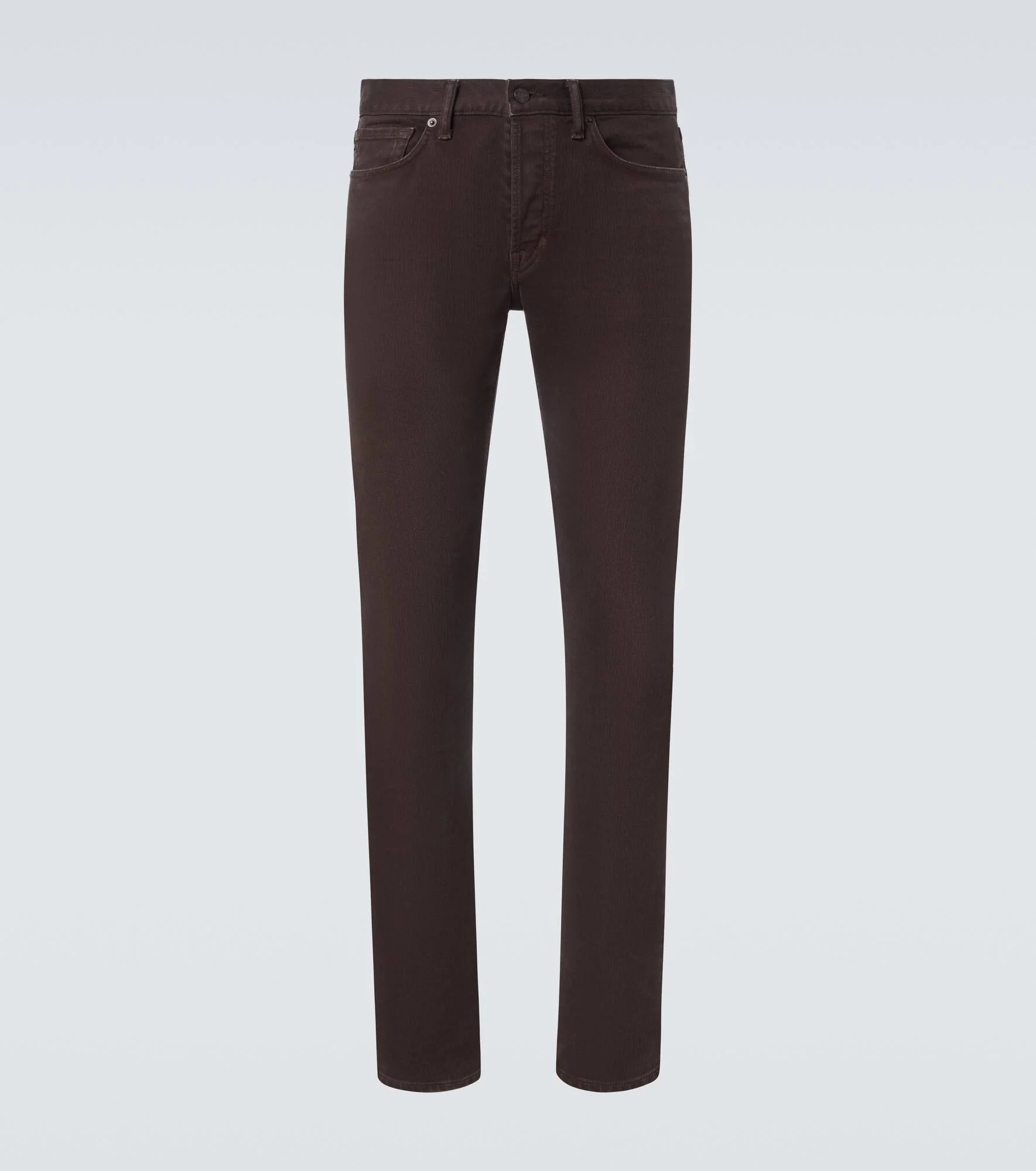 One of the most celebrated designers of all time, Tom Ford is a master at balancing high-octane glamour with modern masculinity. These jeans are made in the USA from brown corduroy denim and feature a slim-leg silhouette. Product Details - Material: 97% cotton, 3% polyurethane - Care instructions: dry clean - Made in the USA - Color: brown - Designer color name: Dark Chocolate - Lining: 100% cotton - Lining II: 70% polyester, 30% cotton - Closure: concealed button placket - Pockets: five pockets - Belt loops - Item number: P01097148 Size & Fit - Fits small to size - we recommend trying one size larger - Non-stretchy fabric - Slim-leg - The model in the picture is 185cm-6'1" and wearing a size 33