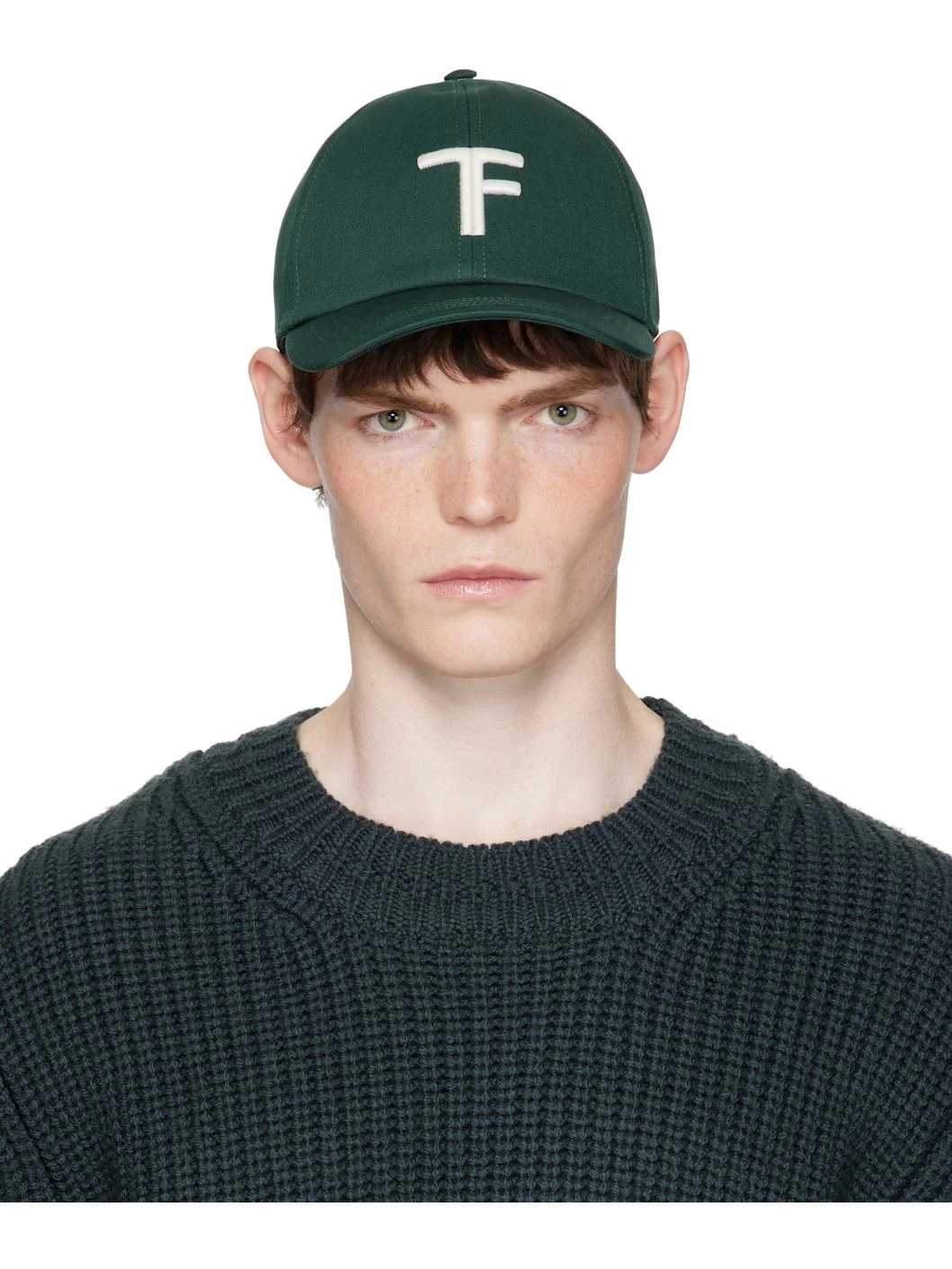 Cotton twill cap. · Logo embroidered at face · Curved brim · Press-stud leather strap at back · Logo stamp at leather strap · Grosgrain browband Supplier color: Pine green/Cream 100% cotton. Made in Italy 252076M139002