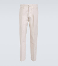 These classic-fit chino pants from Tom Ford are made from 100% cotton in gray. The versatile design has belt loops, straight legs and side slash pockets. Product Details - Made in Italy - Closure: hook fastening, buttoned front - Contains non-textile parts of animal origin - Designer color name: Rock - Pockets: side slit pockets, back pockets - Care instructions: dry clean - Belt loops - Material: 100% cotton - Pocket lining: 100% cotton - Item number: P00738063 Size & Fit - Fits small to size - we recommend trying one size larger - Non-stretchy fabric - Straight leg - The model in the picture is 185cm-6'1" and wearing a size 33