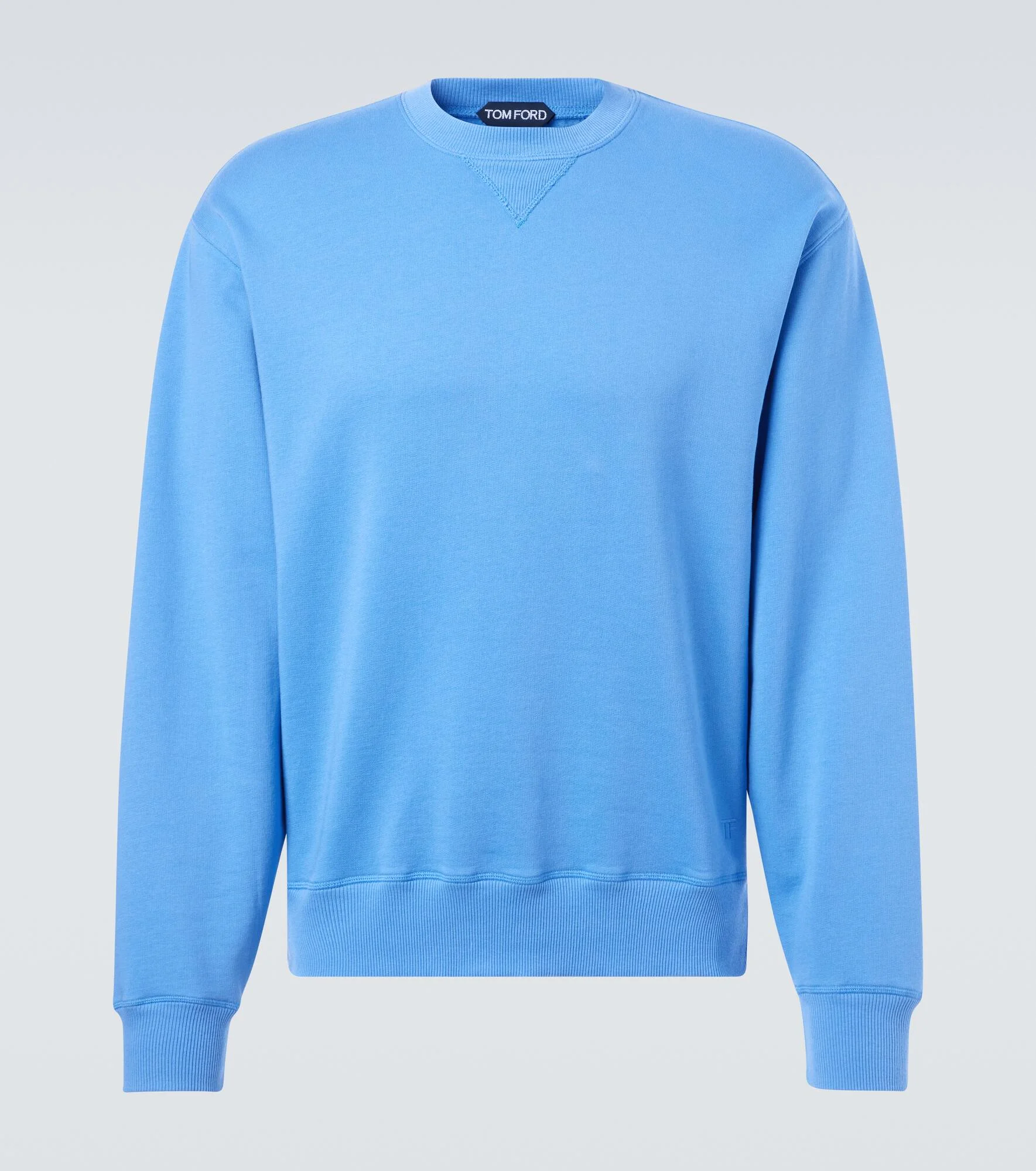 Tom Ford delivers bold sophistication through sharp lines, luxe materials, and an unmistakably modern edge. This blue-hued sweatshirt is crafted from soft cotton jersey with ribbed trims. Product Details - Material: 100% cotton - Care instructions: dry clean - Made in Portugal - Color: blue - Designer color name: Azure Blue - Cuff: ribbed - Collar: crewneck - Hem: ribbed - Item number: P01105246 Size & Fit - True to size - Straight fit - Slightly stretchy fabric - Falls to the hip - The model in the picture is 185cm-6'1" and wearing a size IT 50