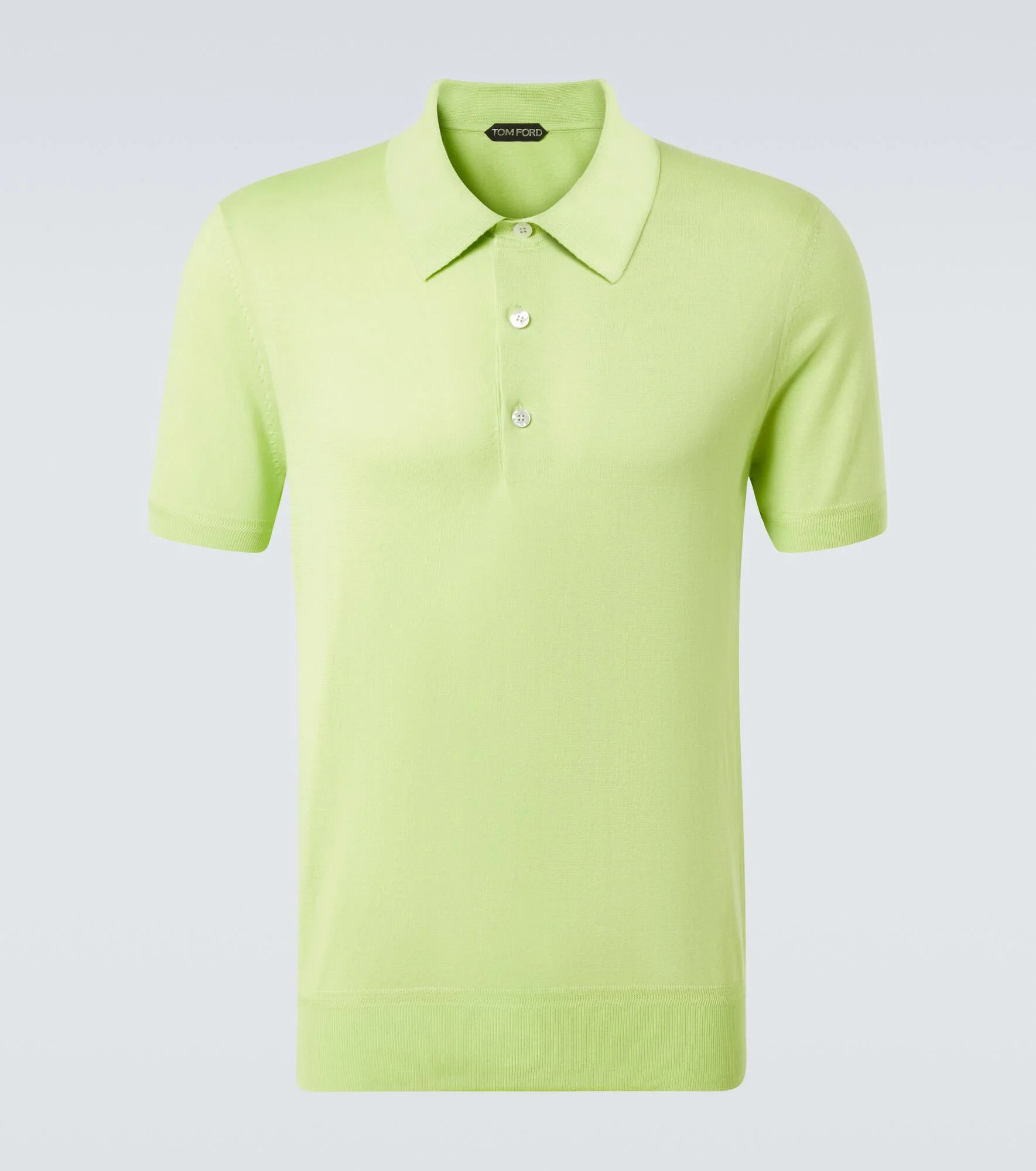 Embrace timeless sophistication with this polo shirt from Tom Ford. Crafted from pure cotton, this design comes in a vibrant green hue and features a classic collar and buttoned front placket. Product Details - Material: 100% cotton - Care instructions: dry clean - Made in Italy - Designer color name: Wild Lime - Item color: green - Contains non-textile parts of animal origin - Collar: polo collar - Closure: partially buttoned front - Item number: P01097167 Size & Fit - True to size - Slim fit - Slightly stretchy fabric - Falls to the hip - The model in the picture is 185cm-6'1" and wearing a size IT 50