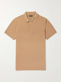 TOM FORD understands the importance of dependable staples. Easy to dress up or down, this polo shirt is cut from breathable cotton-pique and garment-dyed for softness. Small to size. See Size & Fit notes. Size & Fit - Fits true to size. Take your normal size - Those with broad shoulders may wish to take the next size up - Designed for a regular fit - Lightweight, slightly stretchy fabric - Italian sizing Details & Care - Camel cotton-pique - Button fastenings - 100% cotton - Designer colour: Caramel - Mother-of-pearl: Australia, New Zeland - Machine wash