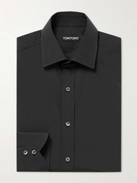 There's an undeniably sophisticated feel to a TOM FORD design. A perfect example, this shirt is cut from crisp, black cotton-poplin in a slim and streamlining profile. Wear it with one of the label's tailored blazers. Size & Fit - Model wears a size larger to achieve a looser fit - Mid-weight, non-stretchy fabric - Model is shown wearing an EU 39 (UK/US 15.5) - Model measures: chest 36"/ 92cm, height 6'2"/ 188cm Details & Care - Black cotton-poplin - Button fastenings - 100% cotton - Machine wash - Mother-of-pearl: Australia
