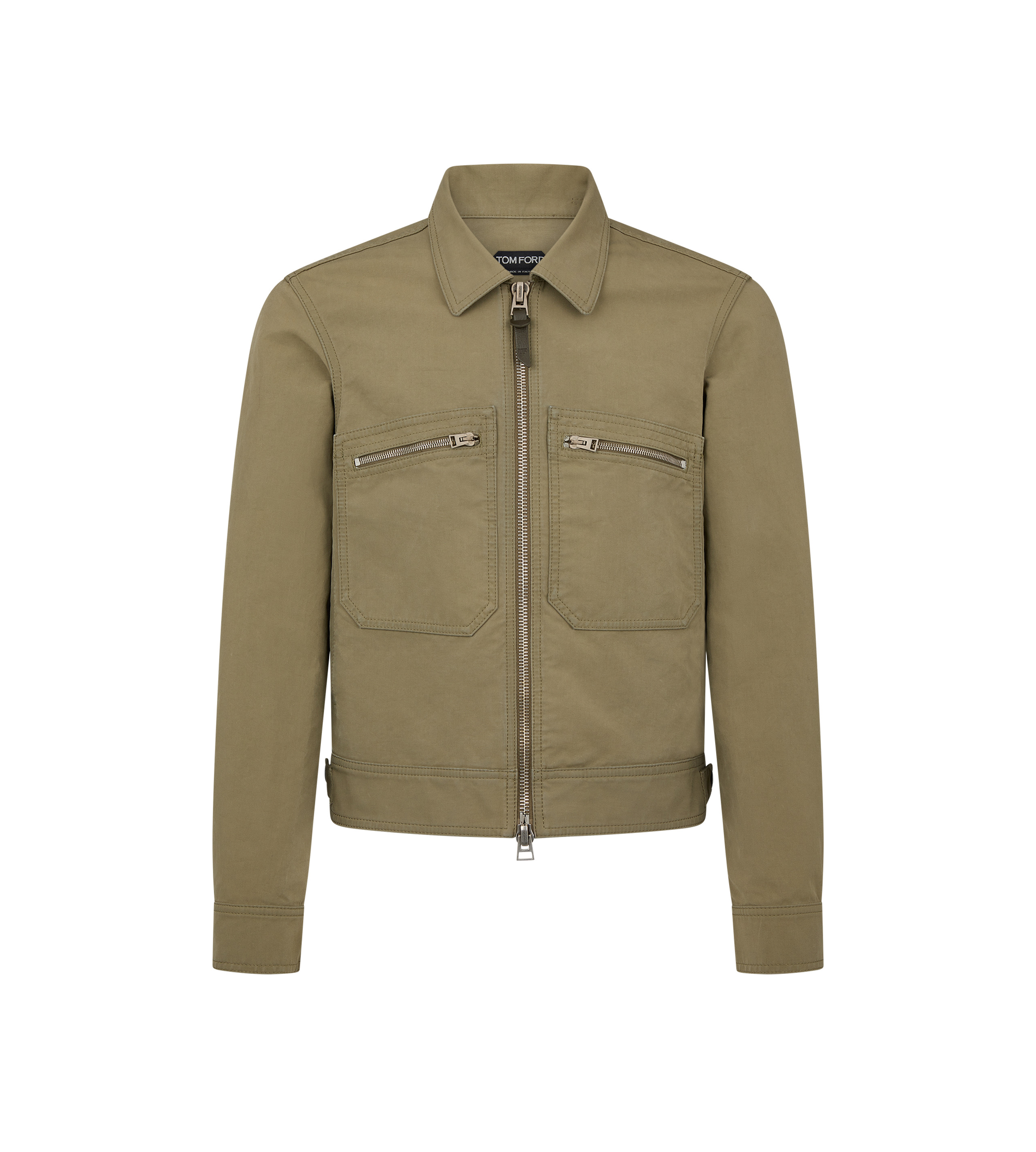 - GARMENT WASHED - UNLINED ZIP COLLAR BLOUSON - CLASSIC FIT - ZIP DETAIL ALONG CHEST POCKETS - TOM FORD LEATHER PATCH ON BACK OF WAIST - TOM FORD PRESS STUD FASTENING ALONG CUFFS AND WAIST SIDE ADJUSTERS - TOM FORD SIGNATURE LEATHER GRAB HANDLE - CENTER BACK LENGTH 58.5CM - 100% COTTON - MADE IN ITALY
