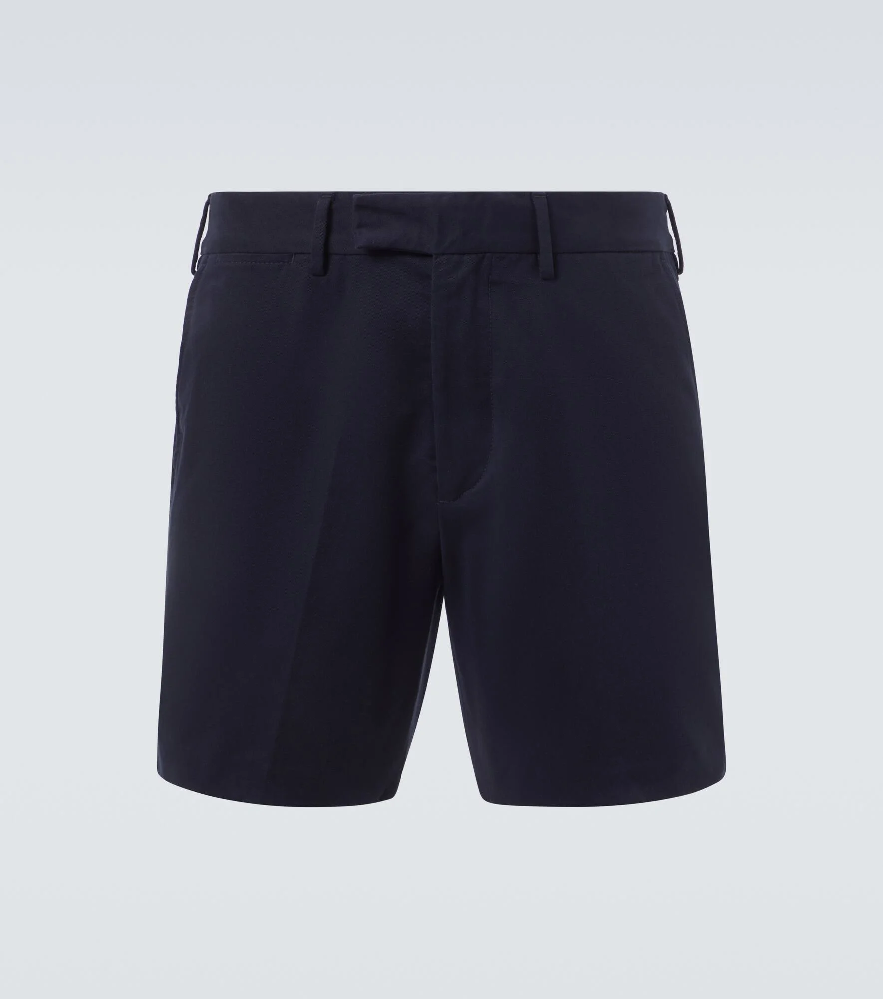 One of the most celebrated designers of all time, Tom Ford is a master at balancing high-octane glamour with modern masculinity. Made in Italy from cotton, these shorts are a tailored pair with slant and back pockets. Product Details - Material: 100% cotton - Care instructions: dry clean - Made in Italy - Color: blue - Designer color name: Navy - Lining: 100% cotton - Contains non-textile parts of animal origin - Closure: zip, hook, and button fastening - Belt loops - Pockets: slant pockets, back pockets - Item number: P01097201 Size & Fit - True to size - Non-stretchy fabric - Straight leg - The model in the picture is 185cm-6'1" and wearing a size 32