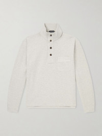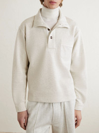 TOM FORD's sweatshirt is cut from cotton, silk and cashmere-blend. Once put on, you'll instantly appreciate how soft and smooth these natural fibres feels on the skin. The buttoned collar can be fastened to create a funnel neck. Size & Fit - Fits true to size. Take your normal size - Designed for a boxy fit - Mid-weight, slightly stretchy fabric - Model is shown wearing an IT 50 - Model measures: chest 37"/93cm, height 6'2"/ 189cm Details & Care - Material: 51% cotton, 40% silk, 9% cashmere - Closure: half-buttoned front - Care instructions: dry clean - Made in Italy - Contains non-textile parts of animal origin - Colour: grey