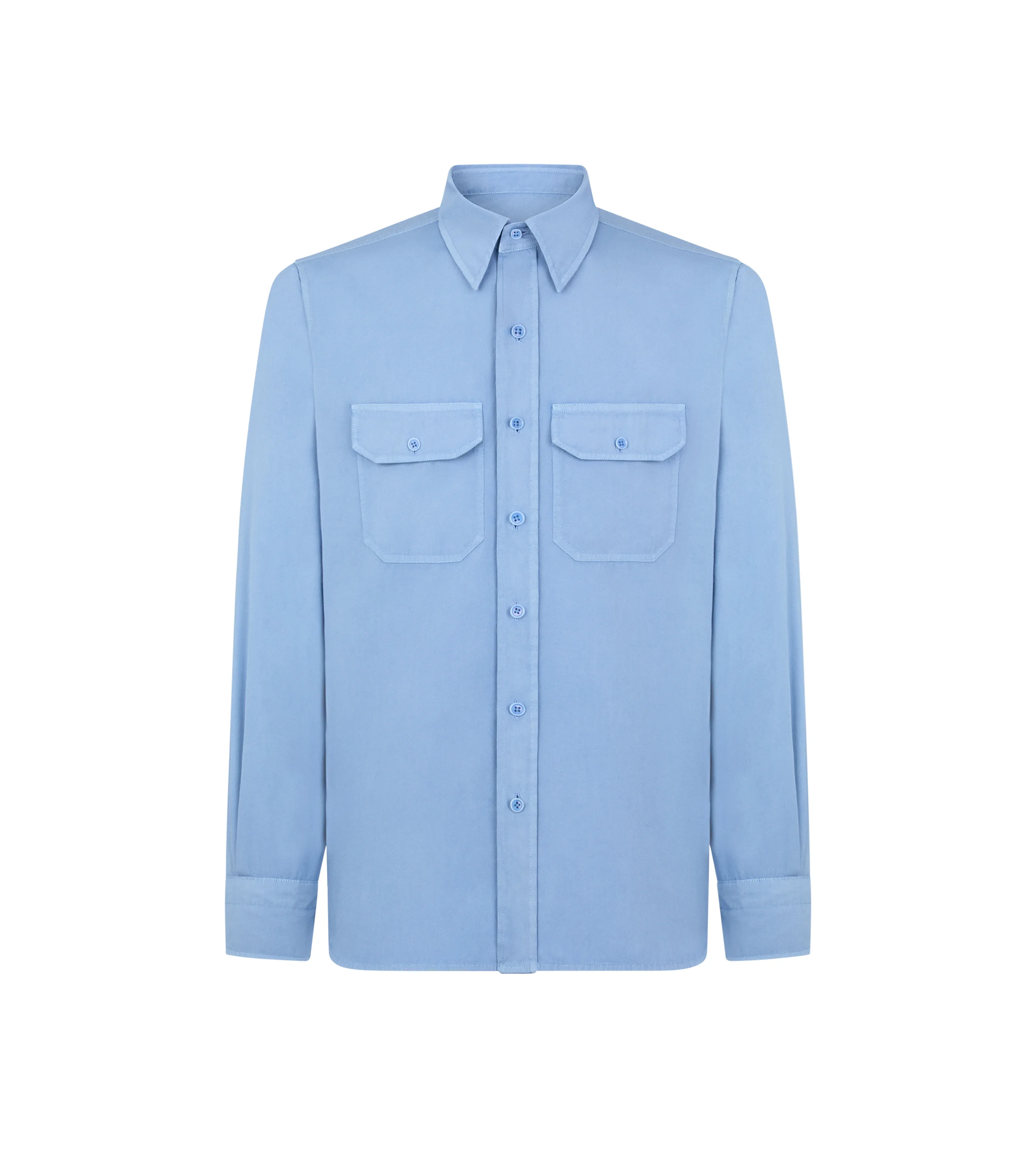 PRODUCT NO: HME001-FMC309 A polished military shirt in cotton silk faille, merging a rigorous structure with a smooth, elevated finish by TOM FORD. Composition: 92% Cotton 8% Silk Made in Italy