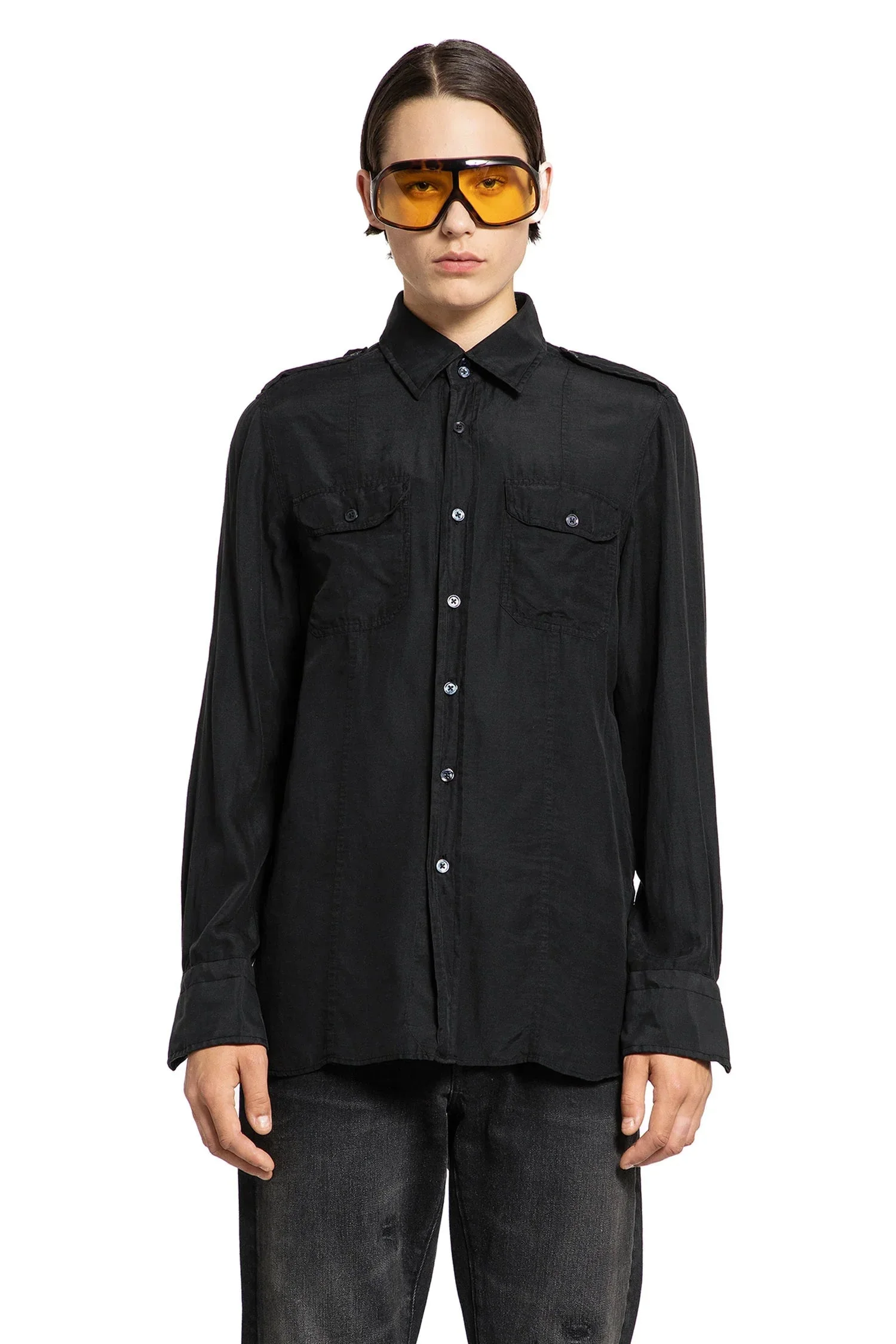 DESCRIPTION - Black - Semi-sheer cotton silk - Classic collar - Epaulettes - Button closure - Button flap chest pockets - Long sleeves - Buttoned cuffs - Regular fit DETAILS - Made in: Italy - Composition: 63% Cotton 37% Silk - Model code: HME004FMC145F24 LB999 - Item ID: 9273433358678