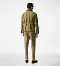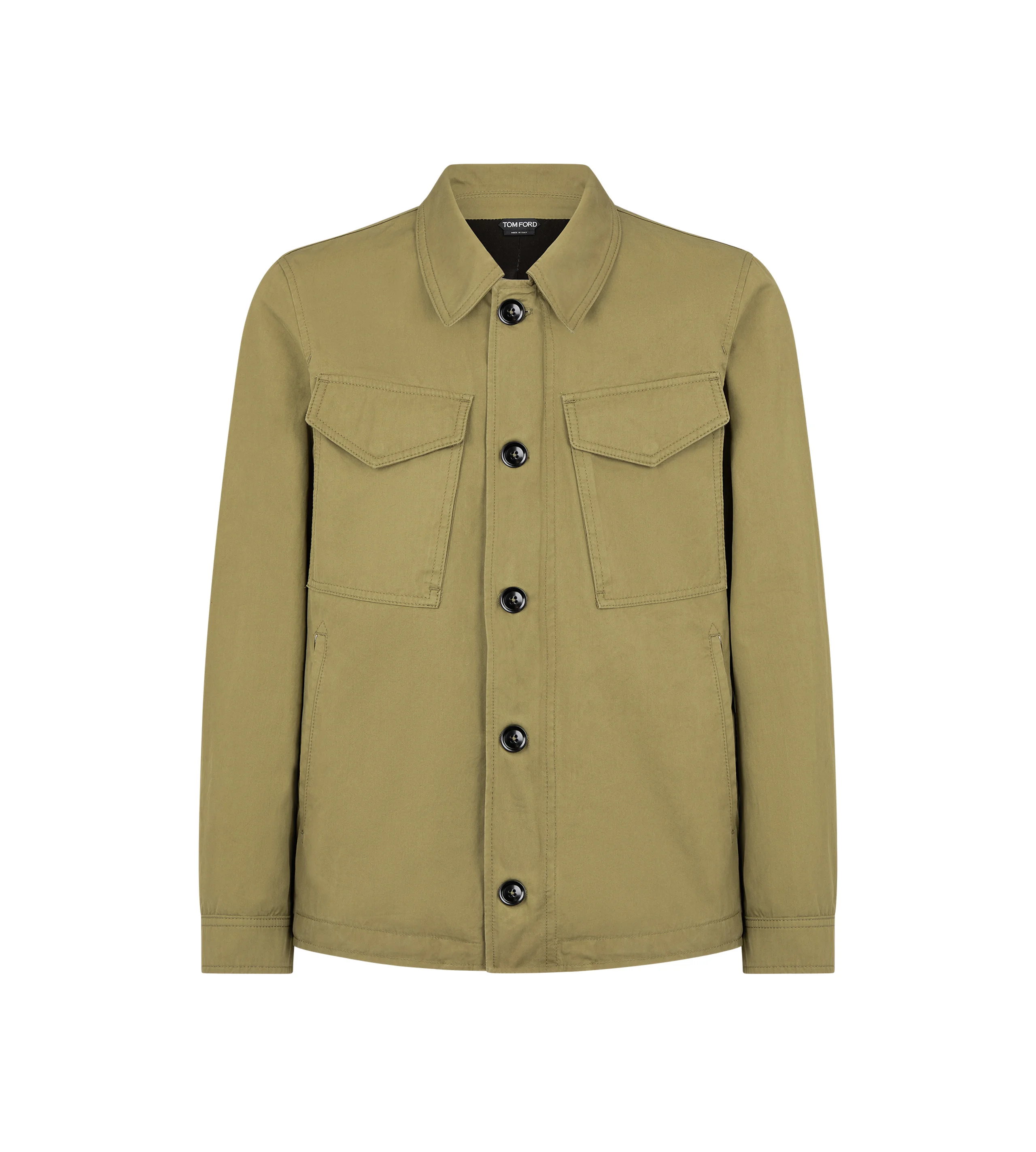 - UNLINED CHORE JACKET - TOM FORD SIGNATURE HORN BUTTONS ALONG FRONT PLACKET WITH CONCEALED ZIP THROUGH - ADJUSTABLE COULISSE ALONG WAIST - TOM FORD SIGNATURE LEATHER GRAB HANDLE - CENTER BACK LENGTH 68CM - 100% COTTON - MADE IN ITALY