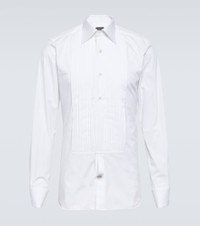 Tom Ford’s tailoring showcases meticulous attention to detail with a dose of high-octane glamour. Made of cotton voile, this tuxedo shirt has mother-of-pearl buttons, a sharply-pointed collar, and a pin-tucked yoke. Product Details - Made in Italy - Closure: buttoned front - Care instructions: dry clean - Designer color name: Optical White - Material: 100% cotton - Item number: P00817837 Size & Fit - Fits small to size - we recommend trying one size larger - With pleats in the back - Slim fit - Mid-weight material - Falls to the hip - The model in the picture is 185cm-6'1" and wearing a size EU 41