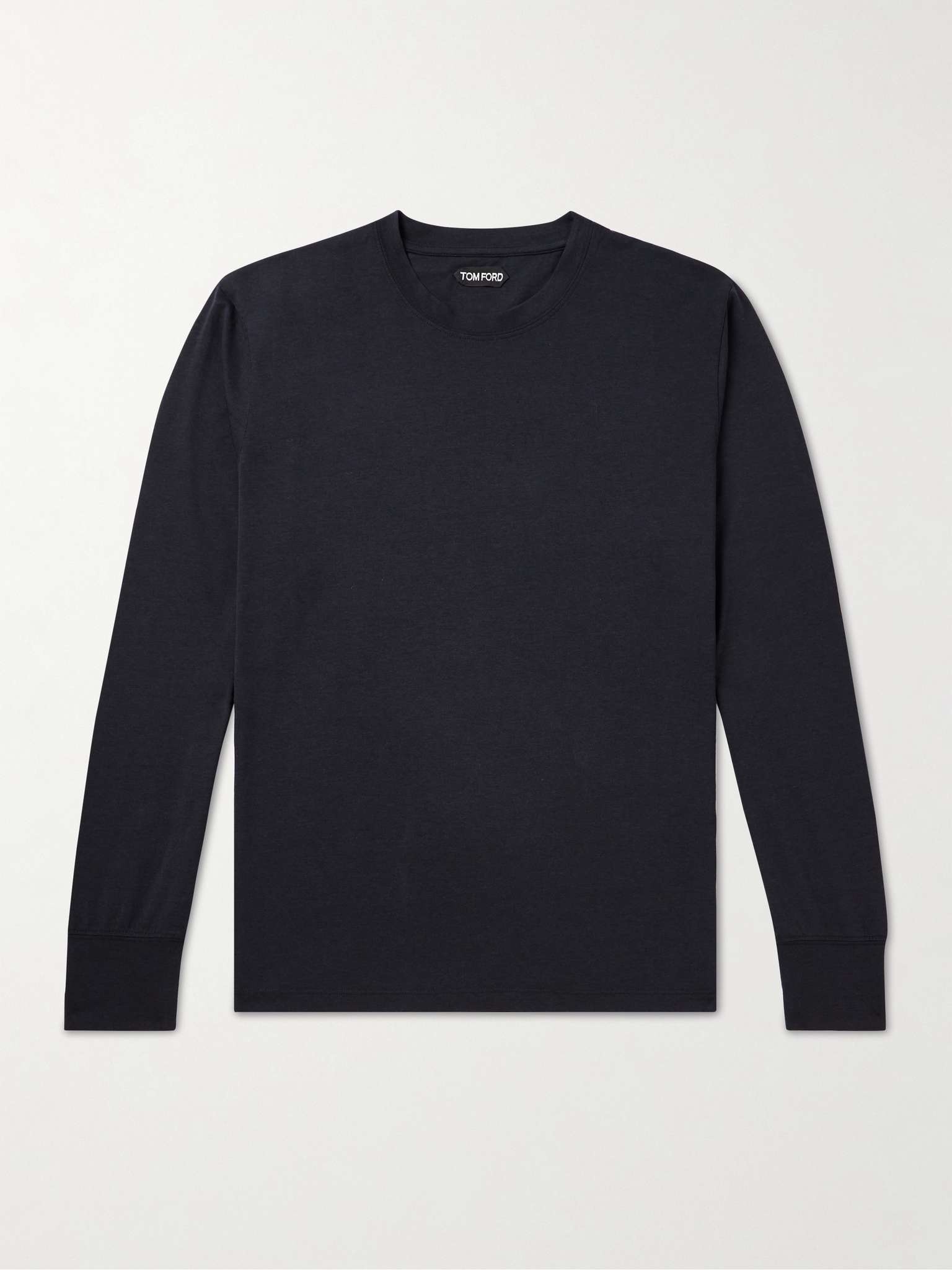 TOM FORD champions premium fibres and timeless design, both of which are apparent in this T-shirt. It's cut in a classic shape from Lyocell and cotton-blend jersey, a combination that enhances breathability and helps resist pilling. Size & Fit - Fits true to size. Take your normal size - Designed for a slightly loose fit - Lightweight, stretchy fabric - Model is shown wearing an IT 48 Details & Care - Charcoal melange Lyocell and cotton-blend jersey - 67% Lyocell, 33% cotton - Machine wash