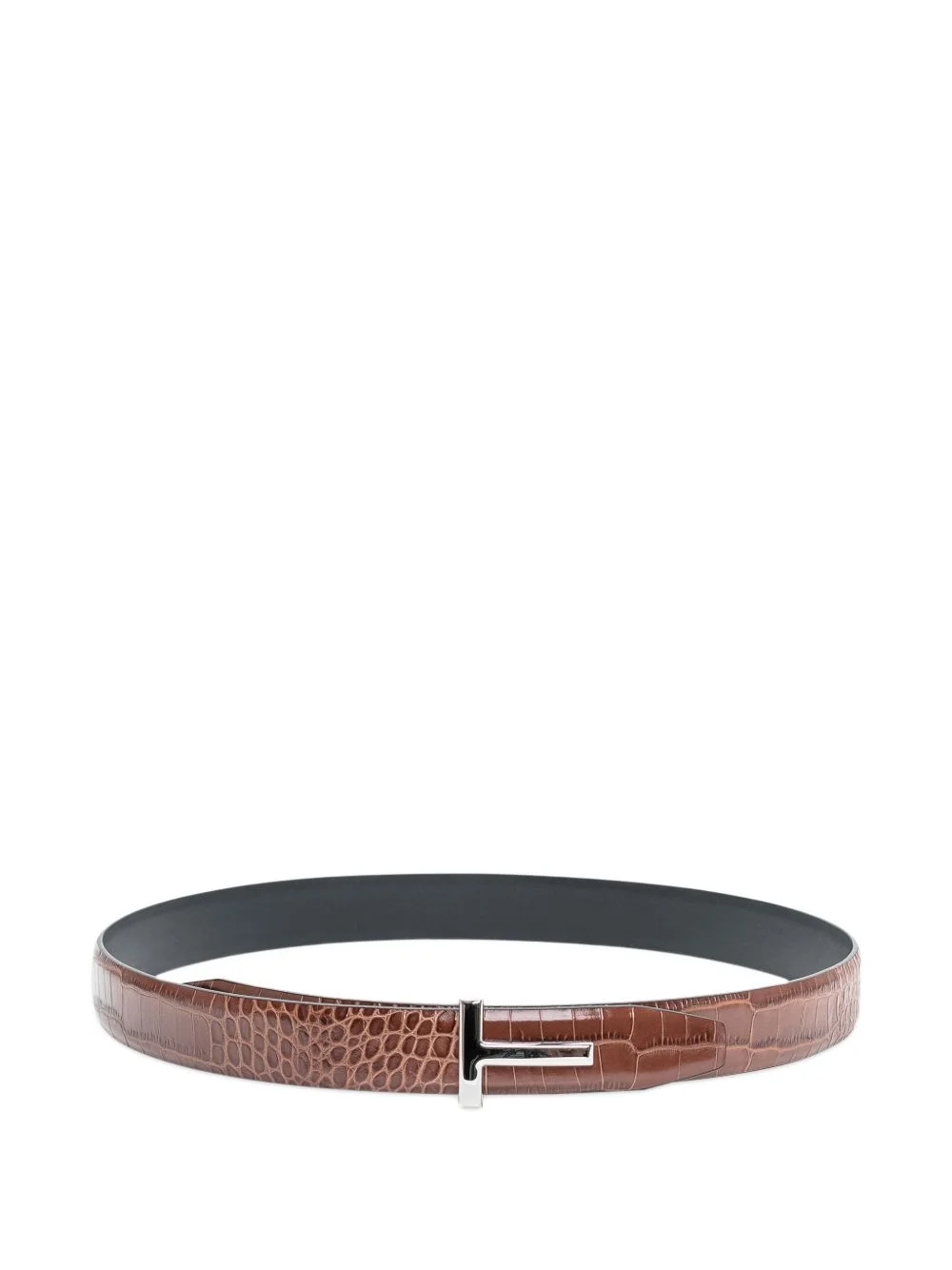 crocodile-effect belt Highlights - Caramel brown - Crocodile effect - T buckle - Shiny finish Imported Composition Outer: Calf Leather 100% SIZE & FIT Measurement WIDTH 1.18 in(3 cm)