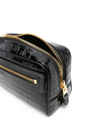 crocodile-effect leather wash bag
