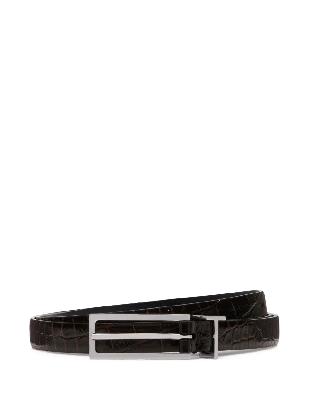 crocodile-embossed belt Highlights - Brown - Crocodile embossed - Silver-tone hardware - Buckle fastening Made in Italy Composition Calf Leather 100%