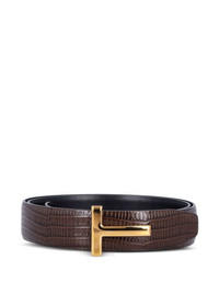crocodile-embossed T-buckle belt Highlights - Brown - Crocodile embossing - T-buckle - Leather - Reversible Made in Italy Composition Leather 100% SIZE & FIT Measurement WIDTH 1.6 in(4 cm)