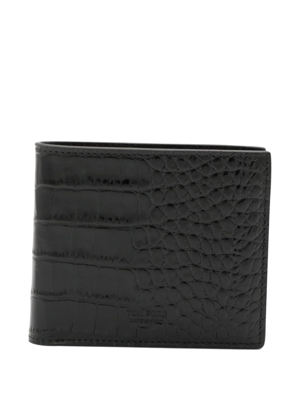 crocodile-effect wallet Highlights - Black - Embossed crocodile effect - Bi-fold design - Internal note compartment - Internal card slots Made in Italy Composition Calf Leather 100%