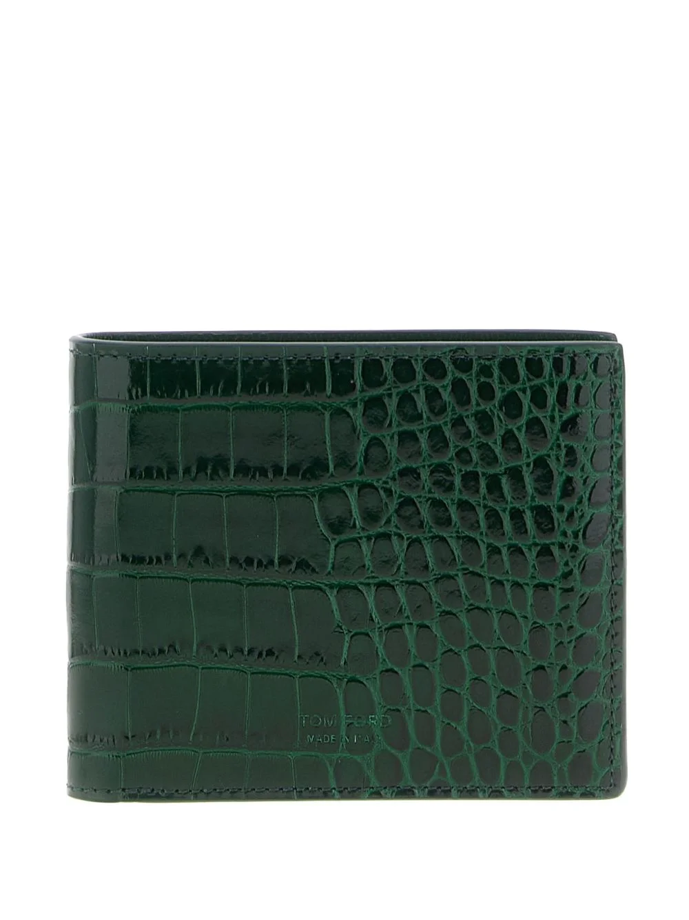 crocodile-embossed leather wallet Highlights - Green - Crocodile embossed - Logo stamp Made in Italy Composition Outer: Calf Leather 100% SIZE & FIT Measurement DEPTH 0.98 in(2.5 cm) LENGTH 3.74 in(9.5 cm) WIDTH 4.33 in(11 cm)
