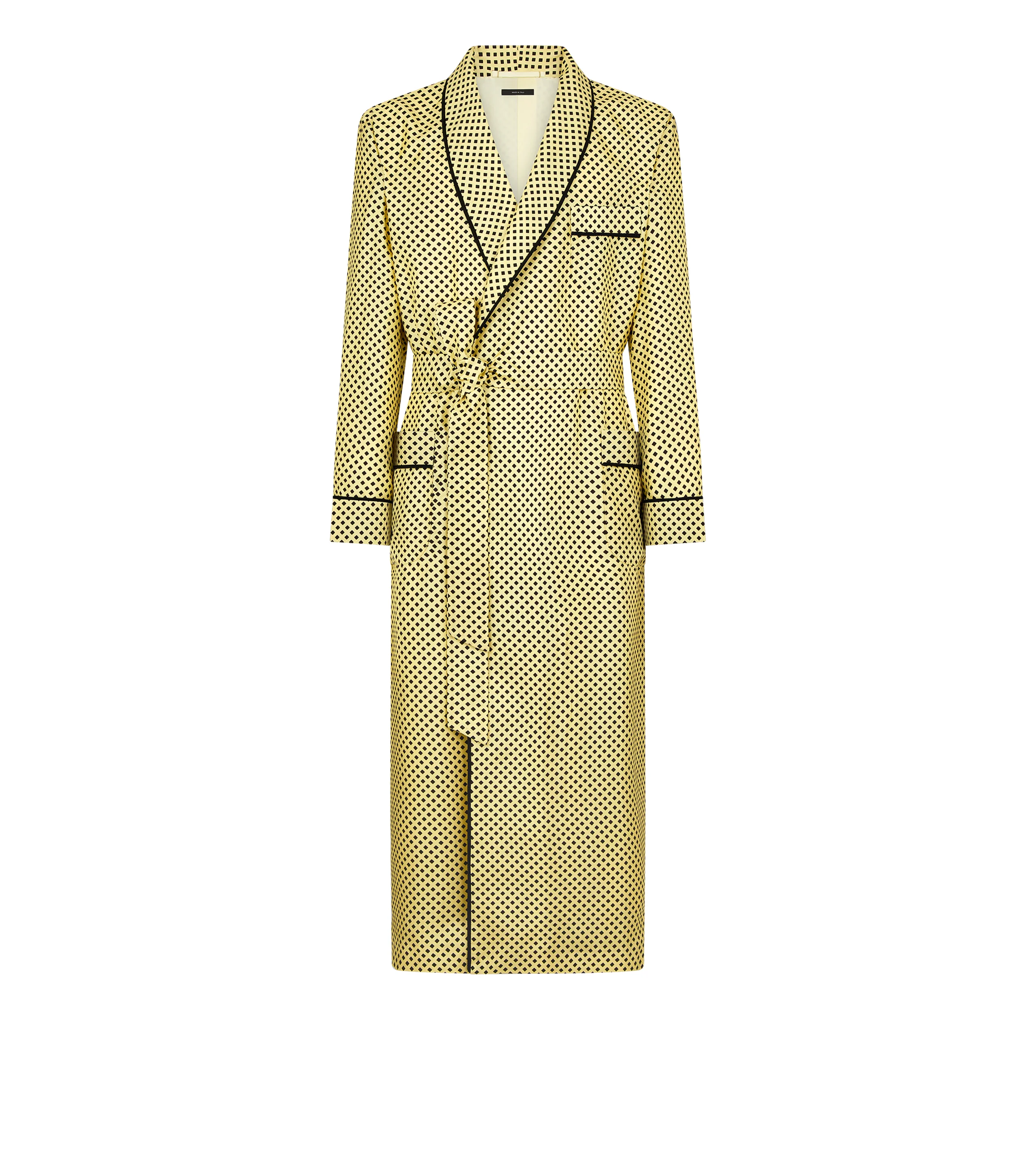 PRODUCT NO: RSL005-FMS099 This TOM FORD robe is crafted in silk twill with a diamond print, offering elegance, comfort and an elevated lounge sophistication. Composition: 100% silk Made in Italy
