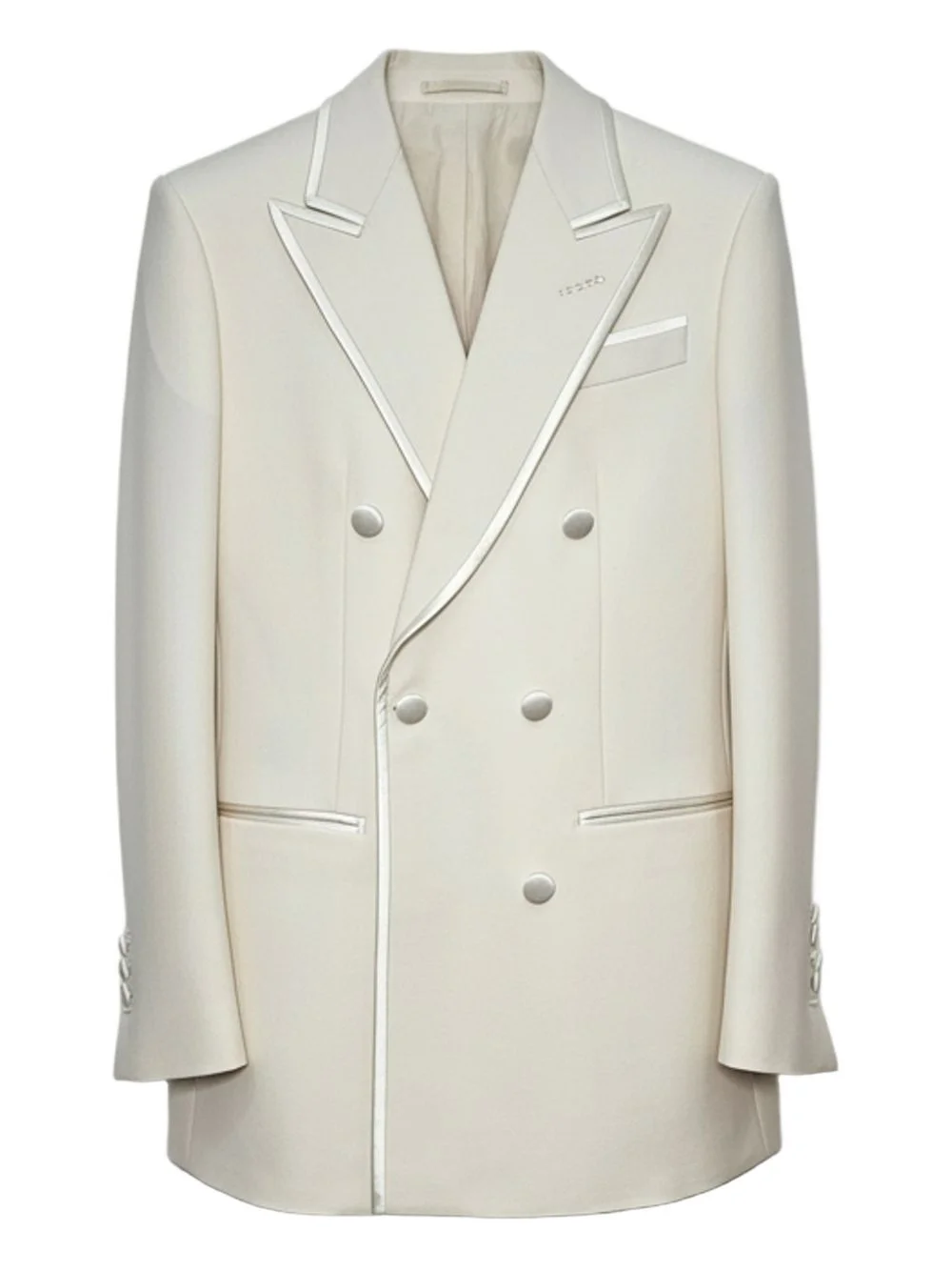 double-breasted blazer Highlights - White - Double breasted - Button closure - Peak lapels - Jetted pockets Made in Italy Composition Wool 52%, Mohair 32%, Silk 16% Washing instructions Read Manufacturer Guidelines