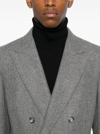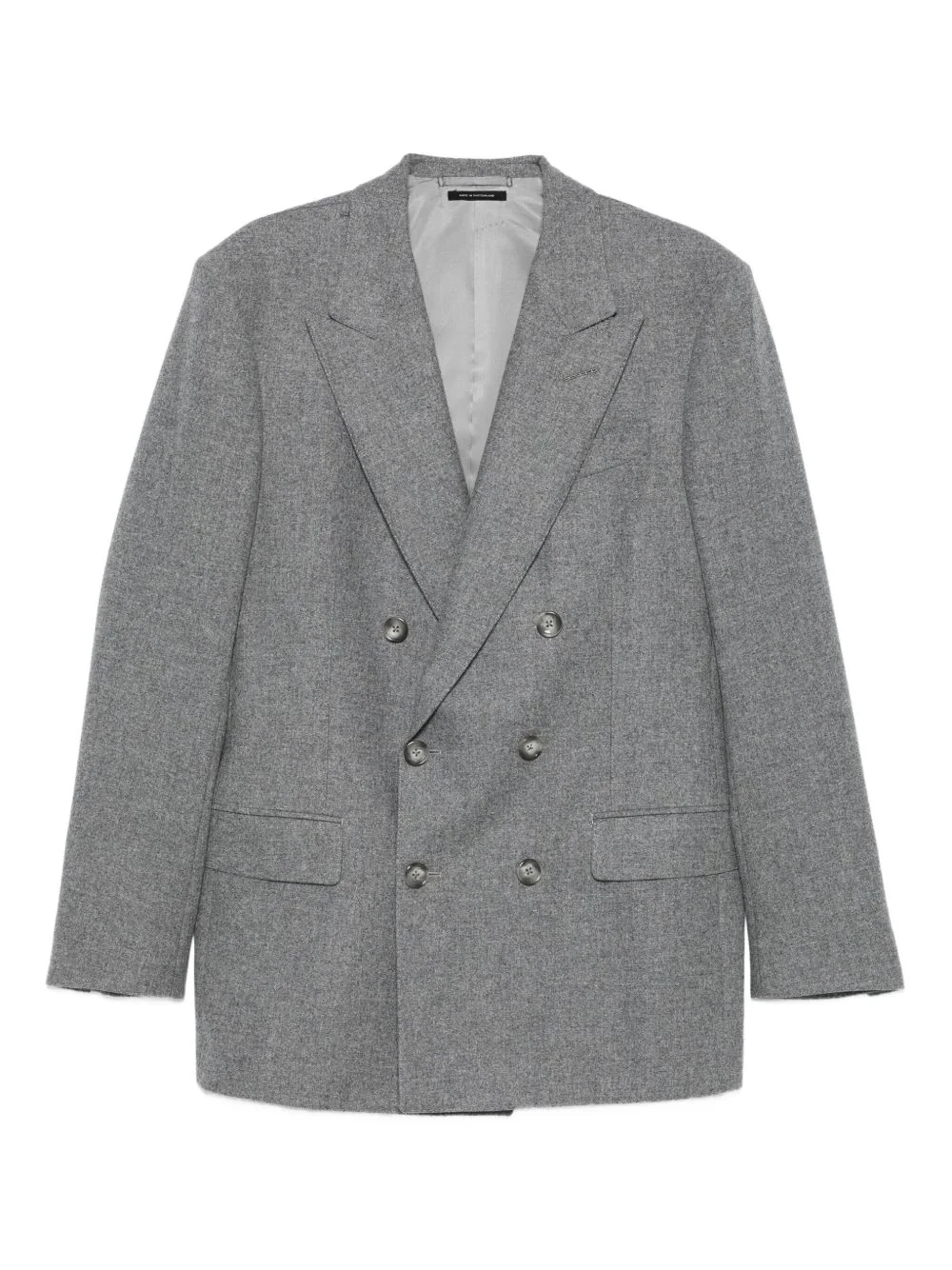 double-breasted wool blazer Highlights - Grey - Double-breasted button closure - Peak lapels - Flap pockets - Long sleeves - Wool Imported Composition Wool 100% SIZE & FIT Model measurements Height 6 ft 1 in(1.85 m) Bust/Chest 38.58 in(98 cm) Hips 37 in(94 cm) Waist 30.31 in(77 cm) Washing instructions Read Manufacturer Guidelines