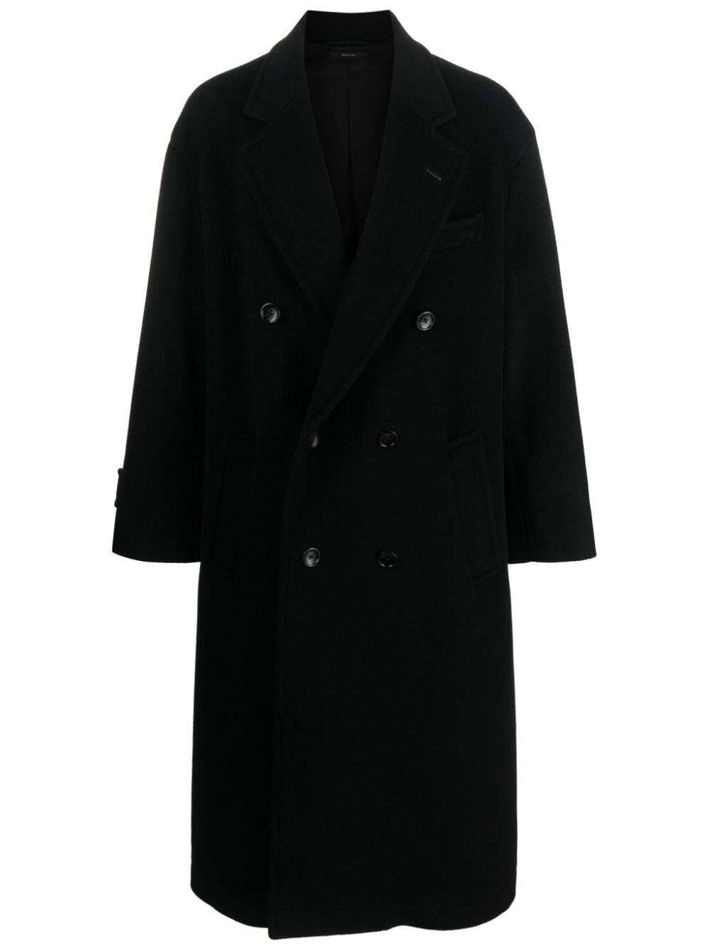 double-breasted wool coat Highlights - Black - Virgin wool - Decorative stitching - Notched collar - Double-breasted button fastening - Long sleeves - Belted cuffs - Two side inset pockets - Straight hem Made in Italy Composition Lining: Cupro 60%, Cotton 40% Outer: Virgin Wool 100% SIZE & FIT Model measurements Height 6 ft 2 in(1.88 m) Bust/Chest 36.61 in(93 cm) Hips 35.82 in(91 cm) Waist 27.95 in(71 cm) FittingInformation Designed to be unstructured, offering a loose fit throughout The vented hem offers movement at the rear Made from a midweight non-stretch fabric This piece fits true to size – take your usual size Washing instructions Dry Clean Only