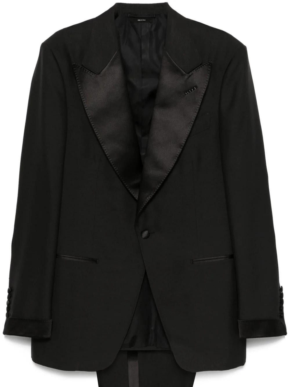 Shelton suit Highlights - Black - Front button fastening - Chest welt pocket - Two front jetted pockets - American rear vent Made in Italy Composition Outer: Wool 70%, Silk 30% Lining: Cotton 70%, Cupro 59%, Silk 41%, Viscose 20%, Modal 10% SIZE & FIT Model measurements Height 6 ft 2 in(1.87 m) Bust/Chest 37.79 in(96 cm) Hips 37.79 in(96 cm) Waist 30.31 in(77 cm) FittingInformation Tailored for a slim fit, offering a comfortable fit that sits just away from the body The unfinished hems allow for the length to be altered Made from a midweight non-stretch fabric