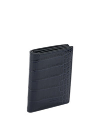 Tom Ford "Exotic Line" folding card case in crocodile-print leather, compact construction with rectangular silhouette. Rigid structure and linear profile, features six dedicated slots for organizing cards. Smooth finish and heat-sealed edges. The surface highlights a regular grain, typical of the embossed treatment, defining texture details. Interior inserts are leather, with tone-on-tone stitching to ensure stability and durability. - Compact structure - Six card slots - Crocodile-print leather - Leather interior - Linear stitching details - Smooth finish - Colour: Blue - Composition: 100% calf leather - Country Of Manufacture: Italy - Dimension: 7x10x1 cm - MPN: Y0417LCL439SUDJ