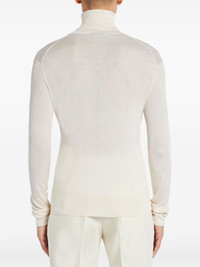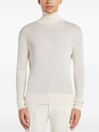 fine-ribbed jumper Highlights - White - Silk blend - Fine ribbed - Roll neck - Long sleeves Made in Italy Composition Silk 50%, Viscose 50% Washing instructions Read Manufacturer Guidelines