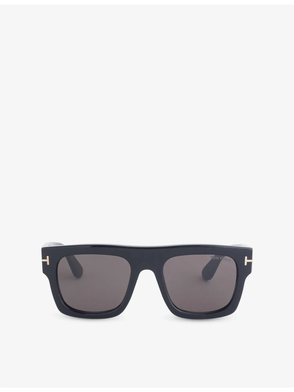 PRODUCT DETAILS - Tom Ford acetate sunglasses - Style number: TF711 - Frame 100% acetate; lens 100% acetate - Square - 100% UV protection, black lenses, brand print and T-shape plaques at front, wide temples, gold-toned hardware, internal brand print - Lens width 50mm, bridge size 20mm, temple length 150mm - Wipe with a clean, dry cloth - Made in Italy - Comes with hard case and cloth Ref: R04556484
