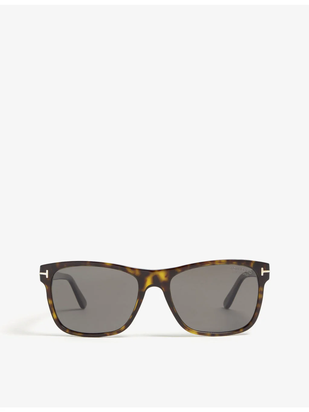 PRODUCT DETAILS Tom Ford acetate sunglasses Tortoiseshell rectangle-frame, polarised tinted lenses, gold-toned hardware, ‘T’ logo, engraved logo plaque at tips 100% UV protection Frame width: 15 cm Hard case Made in Italy