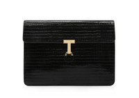 - T PIN PORTFOLIO - T PIN CLASP DETAIL - EXTERIOR: 100% LEATHER - LINING: MICROFIBER - HARDWARE: 100% BRASS GALVANIZATION - DIMENSIONS: 37 X 26 X 5.5 CM - MADE IN ITALY