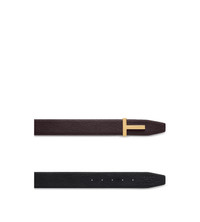 PRODUCT NO: TB178-LCL236G Defined by TOM FORD’s signature T buckle, this reversible belt is made of grain leather. Very versatile, with gold-finished brass hardware for a distinguished accent. Composition: 100% Leather Hardware: 100% Brass with Gold Galvanization Width: 40 mm Made in Italy