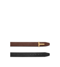 PRODUCT NO: TB178-LCL236G Defined by TOM FORD’s signature T buckle, this reversible belt is made of grain leather. Very versatile, with gold-finished brass hardware for a distinguished accent. Composition: 100% Leather Hardware: 100% Brass with Gold Galvanization Width: 40 mm Made in Italy