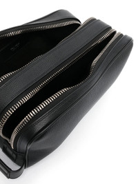 black calf leather grained texture top zip fastening partitioned compartment internal logo patch wrist strap - depth: 14.0 centimetres, handle: 5.0 centimetres, height: 15.0 centimetres, width: 29.0 centimetres - Color: BLACK - Made in: Italy - Designer Style ID: LCL213S Y0172 1N001 Composition and care Lining Composition Cotton: 90.0%, Outer Composition Calf Leather: 100.0%, Lining Composition Acrylic: 10.0%, Outer Composition Brass: 100.0%