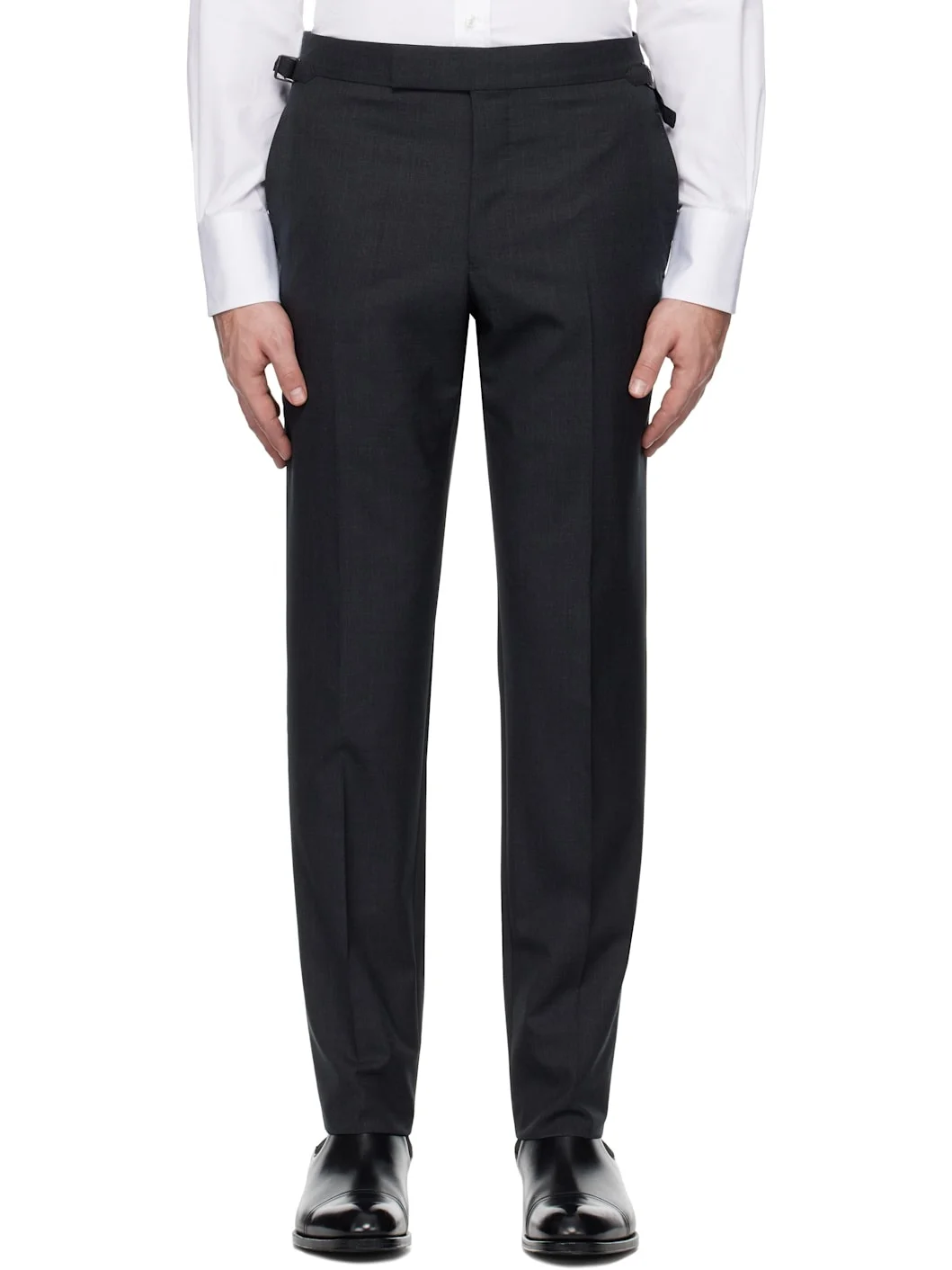 Plain-woven wool trousers. · Cinch tabs at waistband · Zip fly · Four-pocket styling · Creased legs · Notch at back waistband · Partial satin lining Supplier color: Dark grey Body: 100% wool. Lining: 100% cupro. Made in Italy 251076M191008