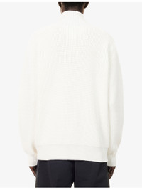 PRODUCT DETAILS - Tom Ford wool jumper - 100% wool - Zip fastening - Regular fit, high neck, raglan long sleeves, all-over stretch rib knit, ribbed trims, leather pull at zip - Dry clean - Made in Italy - True to size - Model is 6ft 2in/1.88m and wears a size UK 40 - Midweight, stretchy Ref: R04550705