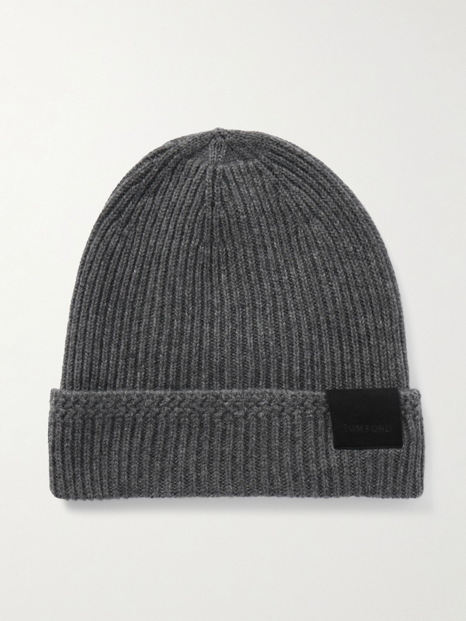 Logo-Appliquéd Ribbed Cashmere Beanie Gray