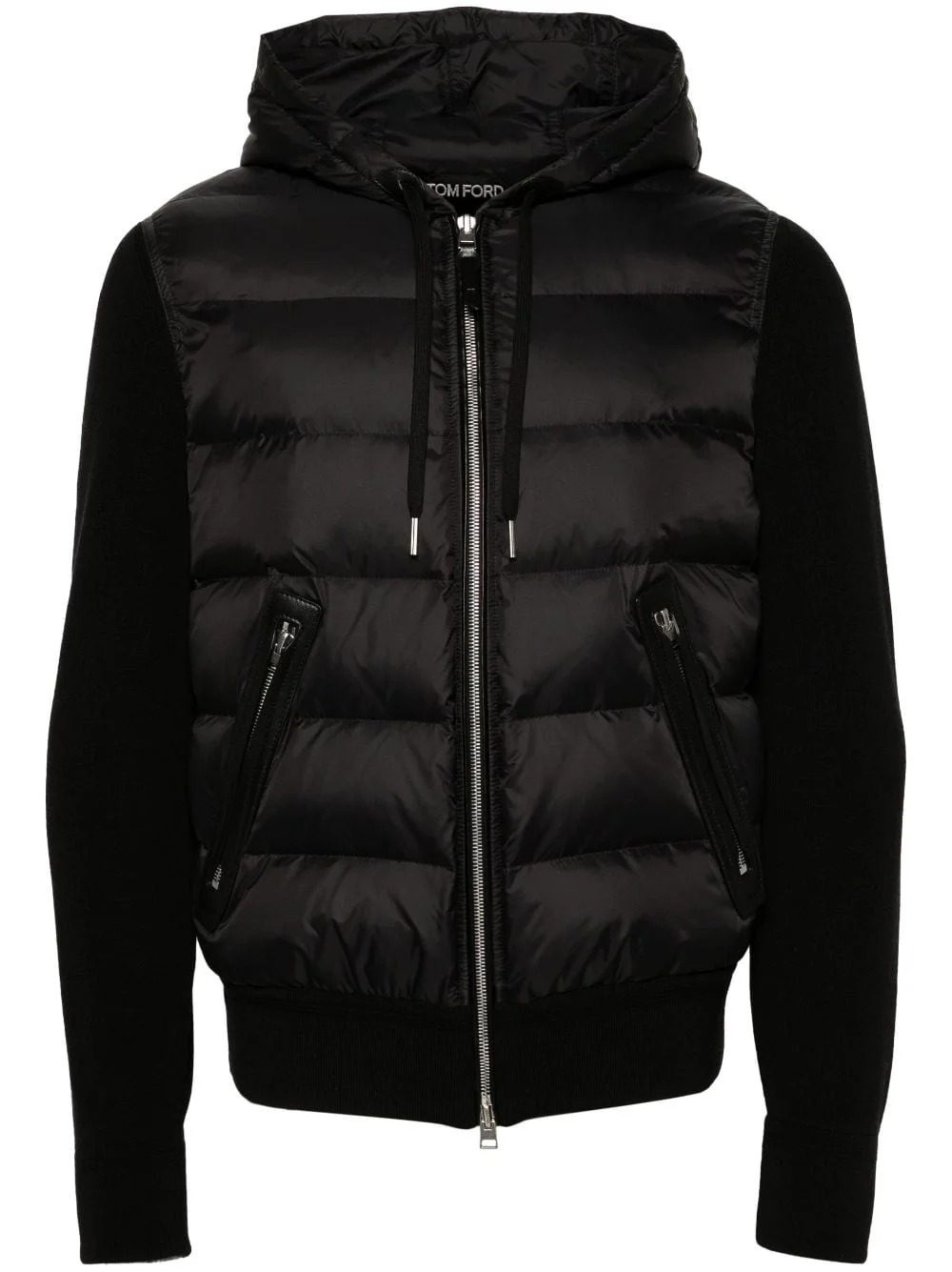 hooded knit-panelled puffer jacket Highlights - Black - Cotton - Feather down - Padded design - Quilted - Knitted panels - Drawstring hood - Front two-way zip fastening - Branded zip puller - Long sleeves - Ribbed cuffs and hem - Front zip fastening pockets - Internal zip-fastening pocket Made in Italy Composition Outer: Polyamide 100% Lining: Feather Down 100%, Cotton 100% SIZE & FIT Model measurements Height 6 ft 2 in(1.87 m) Bust/Chest 36.41 in(92.5 cm) Hips 37 in(94 cm) Waist 29.52 in(75 cm) Washing instructions Dry Clean Only