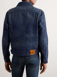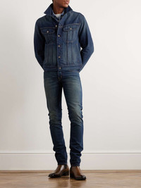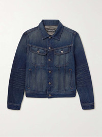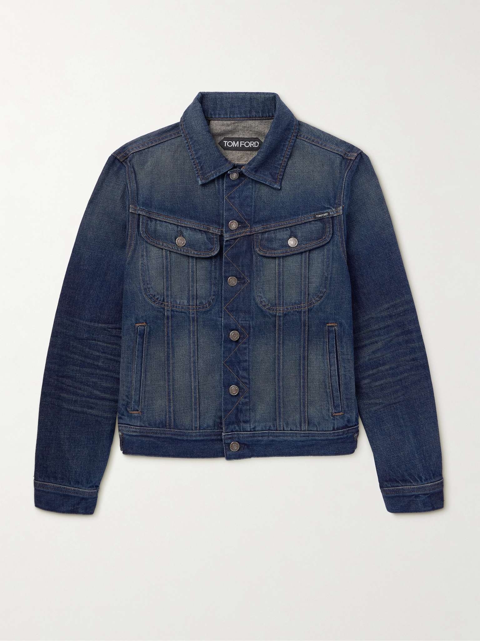 Classic in design and construction, TOM FORD's 'Iconic' denim jacket is one you'll want to wear forever. It's detailed with zigzag topstitching running down the placket and has fading through the chest and flap pockets. Small to size. See Size & Fit notes. Size & Fit - Fits small to size. Take one size larger than normal - Designed for a slightly loose fit - Mid-weight, non-stretchy fabric - Model is shown wearing a L - Model measures: chest 38"/ 96cm, height 6'1"/ 185cm Details & Care - Blue denim - Button fastenings - 100% cotton; trim: 100% leather (Calf) - Machine wash Small to size. See Size & Fit notes.