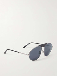 Ken Aviator-Style Leather-Trimmed Silver-Tone Sunglasses