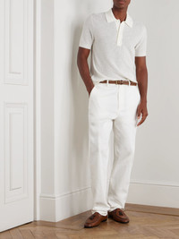 Slim-Fit Waffle-Knit Wool Polo Shirt White