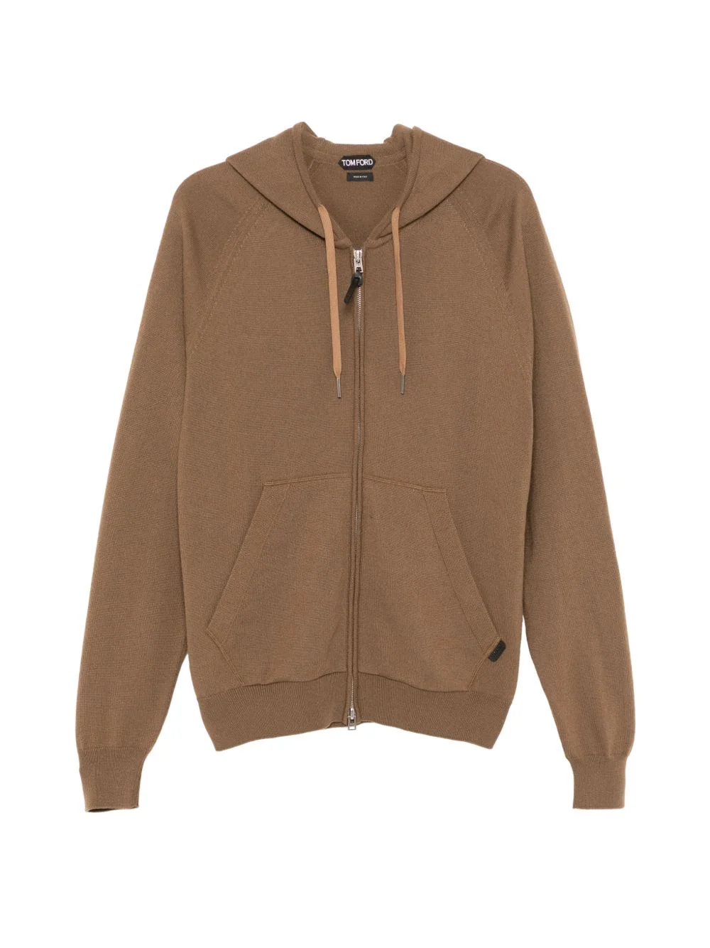 knitted hoodie Highlights - Caramel brown - Drawstring hood - Two front pouch pockets - Front two-way zip fastening - Ribbed cuffs - Ribbed hem Made in Italy Composition Cashmere 61%, Wool 39% Washing instructions Dry Clean Only