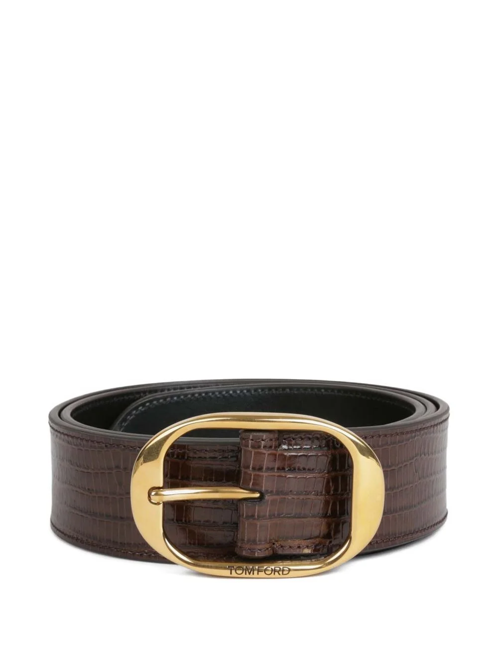 embossed-leather oval-buckle belt Highlights - Brown - Crocodile-embossed leather - Oval buckle - Gold-tone buckle - Leather belt Imported Composition Calf Leather 100%