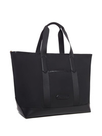 leather-trimmed tote bag Highlights - Black - Logo patch on the front - Removable shoulder strap - Leather trim - Top handles Made in Italy Composition Outer: Fabric 100%, Calf Leather 100%