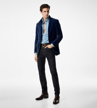 - ATTICUS JACKET - FULLY LINED - PEAK LAPEL - NO TICKET POCKET - SINGLE VENT - CENTRE BACK LENGTH 78CM - COMPACT LIGHT VELVET - 100% COTTON - MADE IN ITALY