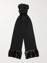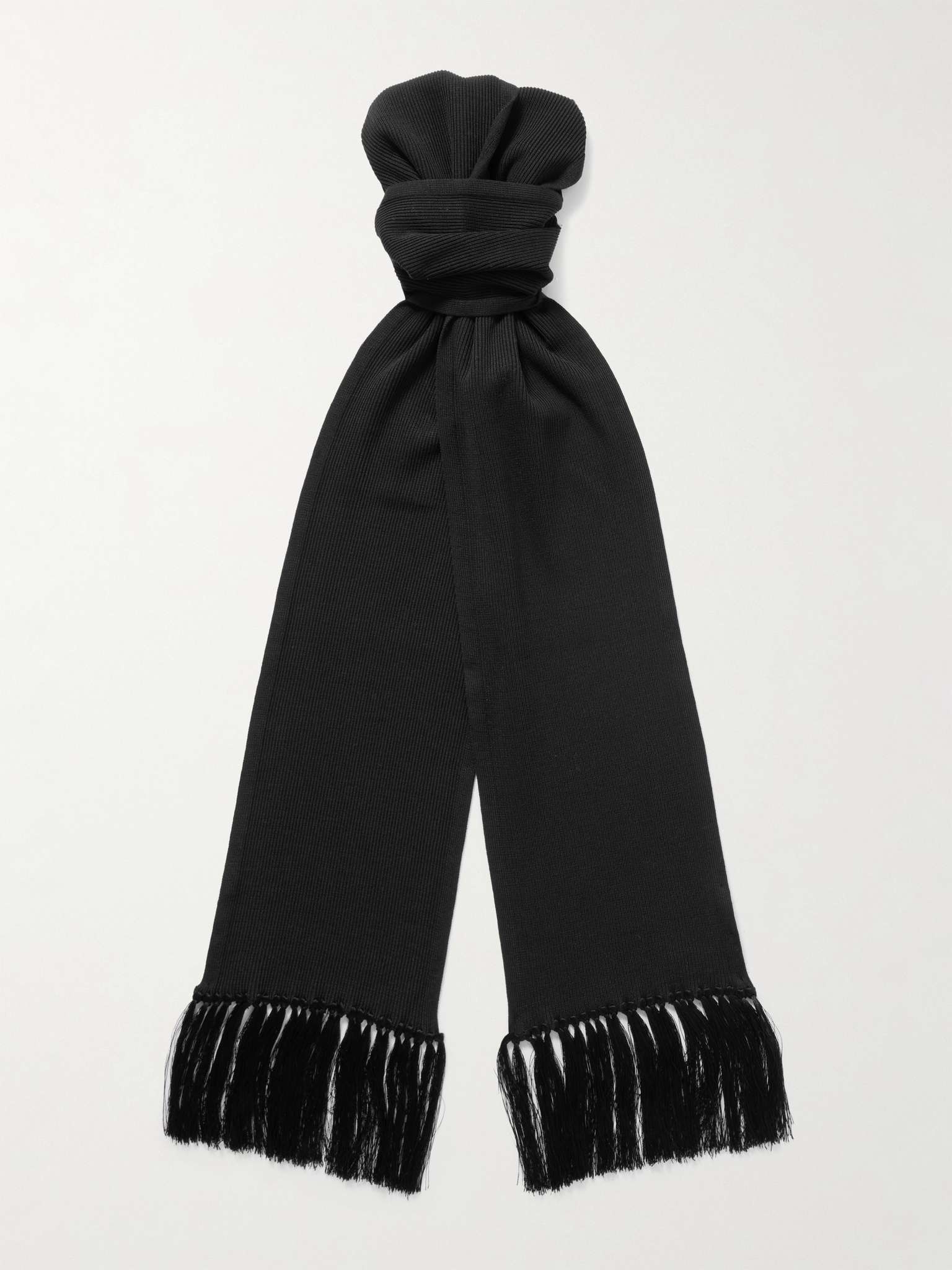TOM FORD’s scarf is finely rib-knitted from smooth silk milled with wool for softness and finished with tasselled ends for plenty of tactile and visual interest. Versatile and timeless, it makes a great investment for winters to come. Size & Fit - Length: 190cm / 74.8in - Width: 15.5cm / 6.1in Details & Care - Black silk-blend - 60% silk, 34% wool, 6% viscose - Dry clean