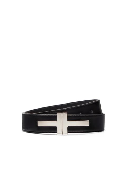 - DOUBLE T BELT - 33MM - 100% LEATHER - HARDWARE: 100% BRASS PALLADIUM GALVANIZATION - MADE IN ITALY
