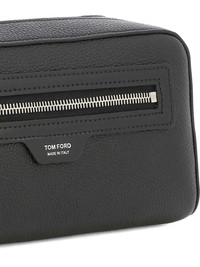logo-detail zip-fastening wash bag Highlights - Black - Textured - Front zip pocket - Logo applique - Silver-tone details - Top zip closure Made in Italy Composition Outer: CALFSKIN 100% SIZE & FIT Measurement DEPTH 3.34 in(8.5 cm) LENGTH 4.72 in(12 cm) WIDTH 9.84 in(25 cm)